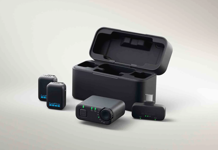 New GoPro wireless Mic system.  24-bit/48KHZ audio with dynamic noise reduction.  These can connect directly to the camera using Bluetooth or you can use with the RX unit.  These also have an RX unit which can be directly connected to the USB-C port of your phone.  They also offer a safety track mode at -6DB (something I love having on my current wireless mic system).  Adjustable gain for balancing your sound levels and preventing overdrive.